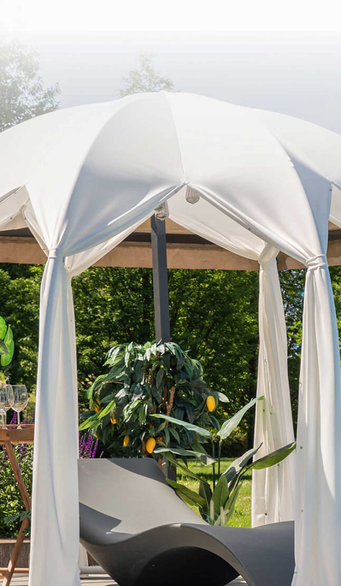 Tak, jest to model Canopy, którego rama wykonana jest z anodyzowanego aluminium i pokryta jest elskluzywną, włoską tkaniną, która doskonale chroni przed słońcem i jest przy tym wodoodporna.